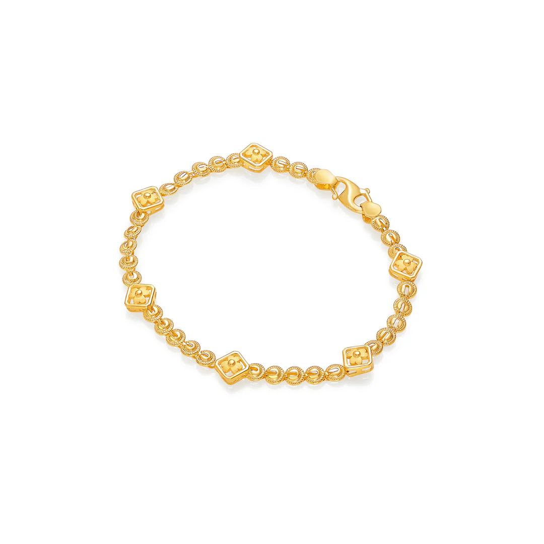 Check out our 22 Karat (916) Gold Yellow Bracelet. It's ideal for little one as a special gift. Great for birthdays, anniversary, and Rakshabandhan. This Gold Bracelet is made to be treasured. It's versatile enough for both festive and casual looks. You'll receive it in secure, tamper-proof packaging, ensuring safety and peace of mind. Additionally, it comes with a lifetime warranty and a convenient buyback policy at our stores across India, making it the perfect thoughtful gift.